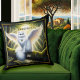 Kissen mit einem Gemälde einer weißen Engelkatze in einem üppigen Wald. Himmlisches Glück!