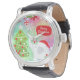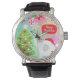 Uhr, Vintage Männeruhr mit schwarzem Lederarmband