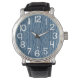 Die Armbanduhr dieser Männer hat ein Deko-Design, das wie auf einem Schaltbrett aussieht. Die Linien laufen vertikal in Weiß auf einem blauen Feld. Woll eine andere Farbe? Nachricht.