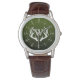 White Deer Antlers Monogram Green Men's Watch Armbanduhr