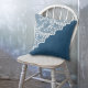 Dieses hübsche Kissen hat ein Bild von einer Augenlidweide, die eine Ecke bedeckt. Die Spitzen bestehen aus kleinen Blume und Blätter. Es wird auf einem mittelblauen Hintergrund platziert. Die Rückseite des Kissens hat das gleiche Bild. *Bitte beachten Sie, dass das Spitzenbild auf dem Kissen gedruckt ist.