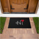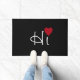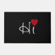 Türmatte mit weißem "Hi" mit dunkelrotem Herz auf schwarzem Hintergrund. Personalisierbar.
