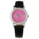 Uhr, Klassische Damenuhr mit schwarzen Lederarmband