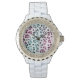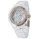Eine wunderbare Damenuhr mit weißem Armband und grün-weiß-kariertem Ziffernblatt. Trägt sich ganz fabelhaft. Exzellenter Druck, sehr klare Farben. Schönes Design.