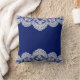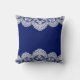 Ein leuchtend königsblauer Hintergrund ist wunderschön kontrastiert mit einem aufwändigen weißen Spitzen-Rahmen in diesem Bild, wodurch ein schönes Kissen, das jedes Zimmer aufhellen wird. Fügen Sie, wenn Sie möchten, Ihren eigenen, maßgeschneiderten Text hinzu. *Bitte beachten Sie, dass das Bild auf der Oberfläche gedruckt ist und keine aktuelle Spitze enthält.* **Erstellt mit Kunstwerken, die von der Digital Design Boutique unter http://digitaldesignboutique.com erworben wurden.