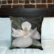 Ein wunderschönes fotografisch-blumengeschmücktes Kissen mit der anmutigen und eleganten weißen Magnolia-Blüte gegen das reiche dunkelgrüne. Die Blüten des Magnolia-Baumes symbolisieren den südländischen Charme und sind die Staat-Blume sowohl von Mississippi als auch von Louisiana, aber willkommen in jeder Zuhause. Das ist eine originelle botanische Blumenfotografie von JLW_Fotografie.