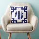 White Navy Blue Circle Monogram Greek Key DIY BG Kissen