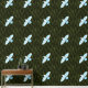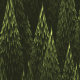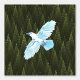 Eine weiße Silhouette eines raven (Corvus corax) im Flug überlagert auf einem grünen Fraktal Hintergrund ähnlich einem Nadelwald.