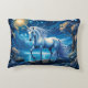 Wunderschönes White Unicorn, nachts am See unter Vollmond, umgeben von Blume KI Art von minx267