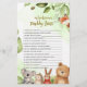 Add fun and laughter to your celebration with this woodland animals baby shower who knows daddy best game card. This cute design features adorable animals like a fox, bear, bunny, and koala with soft watercolor greenery on a light background.