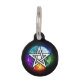 Artistically drawn, luminous pentagram with five magical elements, water, earth, fire, astral, air on black background. Wiccan pentagram. Wicca