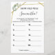 Wie alt war die Braut? Deutsches und spanisches Versionsspiel inbegriffen (vorne und hinten). Fügen Sie Bride's Name in die Vorlage für Englisch und Spanisch. Für weitere Anpassungen (Umformung, Hinzufügen oder Löschen von Fotos, Schriftart, Schriftart-Stil ), klicken Sie auf Personalisieren, scrollen Sie nach unten und klicken Sie auf den Link "Klicken Sie, um weiter anzupassen". WIE MAN SPIELT: Zeigt Fotos der Braut an und nummeriert sie. Die Gäste schreiben ihre Schätzung für jedes Foto und die Person mit den besten Antworten gewinnt!