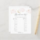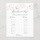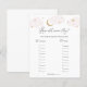Baby Duschspielkarte mit rosa Wolken und goldenen Sternen, um die Over the Moon Collection im Adore Paper Co Zazzle Shop zu passen. Eine unterhaltsame Art, mit Duschgästen zu interagieren, um das Alter der zukünftigen Eltern in den Fotos zu erraten.