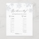 Baby Duschspielkarte mit Aquarellschneeflocken, die mit der Glittery Snowflake Collection im Adore Paper Co Zazzle Shop übereinstimmen. Eine unterhaltsame Art, mit Duschgästen zu interagieren, um das Alter der zukünftigen Eltern in den Fotos zu erraten.
