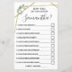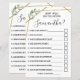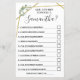 Wie gut kennst du die Braut? Englisch und Spanisch Spiele in der Version inbegriffen (vorne und hinten). Ändern Sie Bride in die Vorlage für die englische und spanische Version zu Name. Für weitere Anpassungen (Fragen und andere Formulierungen ändern, Schriftart Farbe, Schriftart Stil ), klicken Sie auf Personalisieren, scrollen Sie nach unten und klicken Sie auf den Link "Klicken Sie auf, um weiter anzupassen". WIE MAN SPIELT: Die Gäste beantworten Fragen über die Braut, nachdem sie alle ihre Antworten ausgefüllt haben, wird die Braut alle Fragen beantworten, und die Gäste werden auf den rechten Feldern Karo machen, die sie richtig erraten und die Summe der richtigen Antworten am Ende schreiben. Die Person mit den korrektesten Antworten gewinnt.