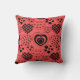 Dieses Kissen hat ein Valentinisches Design wiederholende Herzen mit verschiedenen Grafiken in einem Feld von rot.