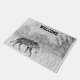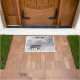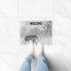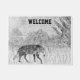 Eine Türmatte für Wildtierliebhaber mit einer schwarz-weißen Wolfskizze. Enthält den Text "Willkommen", der individuell angepasst werden kann. ©Annabel Potter