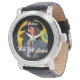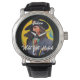 Uhr, Vintage Männeruhr mit schwarzem Lederarmband