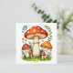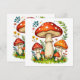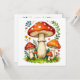 A charming and detailed illustration of wild mushrooms surrounded by grass and delicate forest flowers. The warm, natural colors and hand-drawn style create a cozy woodland atmosphere, perfect for nature lovers and rustic design fans.