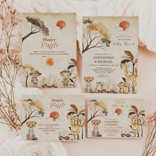 Wild One Safari Animals Boy Baby Raffle Diapper Begleitkarte