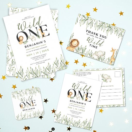 Wild One Safari Animals Junge Geburtstag Minimalistisch Dankeschön Karte