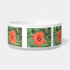 Diese phantastische Tierschale zeigt ein detailliertes Foto einer hübschen wilden Mohn-Blume. Diese schöne, hellrote Blüte hebt sich vor einem Hintergrund von grünem Blattwerk ab. Das Foto wurde mit Makrofotografie für ein detailliertes Bild aufgenommen.