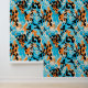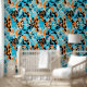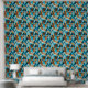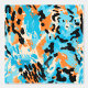 Ein nahtloses Muster mit blauen, orangen und schwarzen Tierabzügen. Das Design vereint das kühne und exotische Wesen von Tiermustern mit lebhaften Farben und auffallenden Kontrasten