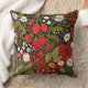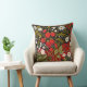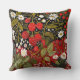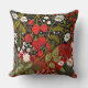 Hübsches Kissen mit Erdbeeren, Molkereien und Blätter auf rotem und schwarzem Hintergrund.