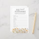 Feiern Sie die bald werdende Mutter mit unserem Rustic Baby Shower Game. Dieses elegante und einzigartige Spiel bietet sowohl schicke Wildblumen als auch ein lustiges "baby word cramble"-Spiel. Stellen Sie Ihrer Veranstaltung eine Touch von Launen vor, während Sie Ihre Gäste unterhalten behalten haben. Bringen Sie Tradition, Stil und Spaß in Ihre Babydusche mit diesem einzigartigen Spiel.