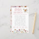 Sie suchen ein Babyduschenspiel zum Thema Wildblume? Dieses Wildblume Word Search Spiel ist die perfekte Unterhaltung für Ihre Gäste. Zu diesem Thema gehören die rustikalen Aquarellgarten-Blume und die Grünanlage. Personalisieren Sie den gesamten Text für Ihre Veranstaltung. Diese Kollektion enthält Einladungen, Dankeschön-Karten, Beilagen, Spiele und Dekorationen für alle Ihre Eventbedürfnisse! Um Ihre Veranstaltungsdetails zu bearbeiten, klicken Sie auf "Personalisieren" oder "Details", löschen Sie den vorausgefüllten Text und ersetzen ihn durch Ihren eigenen. Bei Fragen stehen wir Ihnen gerne zur Verfügung.