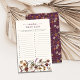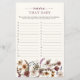 Dieses Wildblume Baby Shower Game verbindet Eleganz und Charme. Die handbemalten Wildblumen in den Farben Bordeaux, Gold, Creme und Violett, die von üppiger Vegetation unterstrichen werden. Diese Blumen sind für jede Jahreszeit geeignet und in einem herrlichen Seitenstrauß angeordnet, das ein modernes und frisches Ambiente verleiht. Mit einem Bordeaux-Muster auf der Rückseite bietet diese Spielkarte Vielseitigkeit und Eleganz und macht sie zu einer unterhaltsamen und stilvollen Unterhaltung für Ihre Baby-Duschgäste.