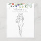 Brautparty-Spielkarte mit einer Aquarellkaskade aus Wildblumen und Grünpflanzen mit einer lebhaften Biene. Eine unterhaltsame Art, mit Duschgästen zu interagieren.