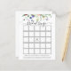 Brautparty Bingokarte mit einer Aquarellkaskade aus Wildblumen und Grünpflanzen mit einer lebhaften Biene. Eine unterhaltsame Art, mit Duschgästen zu interagieren, während die Braut sich öffnet ihre Geschenke.