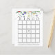 Brautparty Bingokarte mit einer Aquarellkaskade aus Wildblumen und Grünpflanzen mit einer lebhaften Biene. Eine unterhaltsame Art, mit Duschgästen zu interagieren, während die Braut sich öffnet ihre Geschenke.