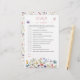 Behalt dein Brautparty mit diesem eleganten Schmetterling und der Wildblume "Over or Under". Diese Karte mit raffinierten Blumenbildern und Schmetterlingsbildern passt perfekt zu einem gehobenen Party- oder Gartenthema. Die Gäste raten, ob jede Aussage über die Braut oder das Paar vorbei ist oder unter der Wahrheit steht - eine schöne, lachende Ergänzung zu Ihrer Veranstaltung.