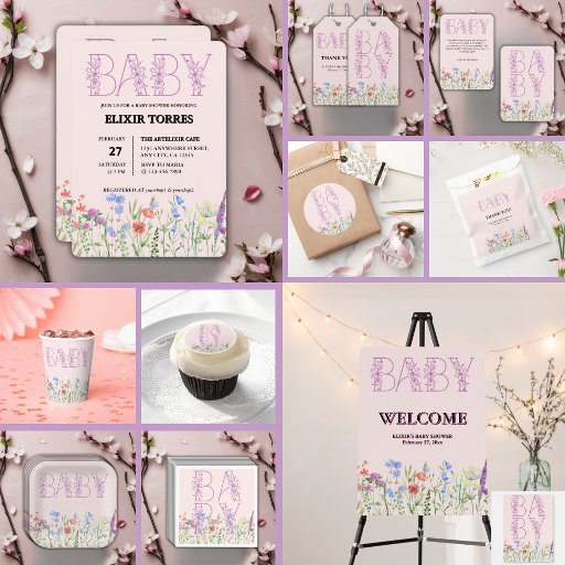 Wildflower Purple Floral Baby Monogram Baby ShowerDesignt von Elixir Torres