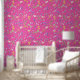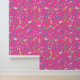 Fun Hot Rosa Akzent Tapete mit einem Muster von Wildblume Aquarellen.