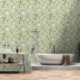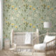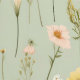 Hübsche Wildblumen schälen und kleben Tapeten für eine akzentuierte Wand oder Wand. Grüner Hintergrund.