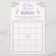 Die Babydusche-Bingo-Spielkarte bietet Aquarellfarben-Wildblumen, Lavendel, Gänse und Whimsikgänse. Personalisieren Sie die Rückseite der Karte mit einem Namen. Matching-Produkte verfügbar.