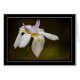 Dewdrops von der neuen Regen-Erholung auf Blumenblättern der schönen weißen wilden Orchidee. Blume steht heraus gegen dunkles Braun und grüne Farben des Hintergrundes. Diese leere Anmerkungskarte ist bereit, mit Ihrem eigenen Text besonders angefertigt zu werden. Wählen Sie mehrere dieser leeren Mitteilungskarten vor und geben Sie in einem Set als Geschenk. Kann als regelmäßige 12x18grußkarte auch bestellt werden.