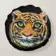 Wilde Tigerfront auf schwarzem Rundkissen Rundes Kissen