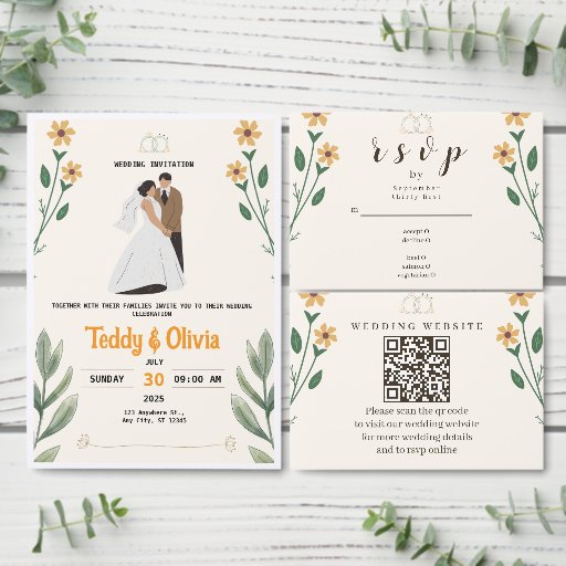 Featuring romantic watercolor wildflowers in earthy botanical tones, this design sets the tone for a nature-inspired wedding celebration.