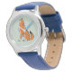 Kinderuhr aus Edelstahl mit blauem Lederarmband
