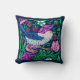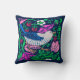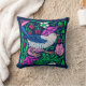 Kissen im William Morris Art Nouveau Stil, digital verstärkt und farbig, mit einem Vogel in Weich- und Kobaltblau, fuchsienrosa Blume, grünen Blätter und wilden Erdbeeren, vor einem dunkelblauen indigofarbenen/marineblauen Hintergrund