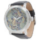 Uhr, Vintage Männeruhr mit schwarzem Lederarmband
