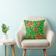 Kopfkissen im William Morris Art Nouveau Stil von Honeysuckle Blume vor einem Hintergrund von Weinreben und Blätter - Blume in den Farbtönen Korallenorange und Korallenrot, mit smaragdgrünen Blätter, vor einem pastellgrünen Hintergrund