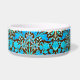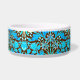 Die Schüssel ist in einem Vintagen William-Morris-Muster aus Hyazinthen, Tulpen und Blätter, in sanften Aqua- und Cerulesblau gehalten, mit Korallenrosa und Orange dekoriert, auf dunkelschokoladenbraunem Hintergrund