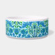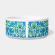 Eine Schüssel mit Begleiter in einem Vintagen William-Morris-Muster aus Hyazinthen, Tulpen und Blätter, in den Farben tiefes Cerulean und Kobaltblau, mit Marinebar, Gelb und Kalkgrün, auf pastellblauem Hintergrund