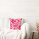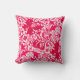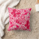 Throwkissen in einem Vintagen Blumendruck Williams Morris der stylized Lilien und der Iris, digital erhöht und, in den Schatten des Lichtes zum tiefen pinkfarbenen rosa und tiefen Weinrot auf einem weißen Hintergrund gefärbt