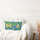 Kissen aus Lumbar in einem William Morris, Jugendstil, Textiliendruck von Reisen und Blätter, digital verstärkt und farbig, in goldgelb, grün und weichblau, auf einem tiefkobaltblauen Hintergrund